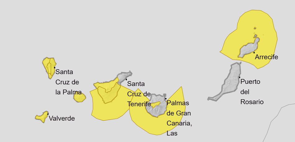 I tillegg er det farevarsel for bølger langs kysten av Tenerife og Gran Canaria, unntatt lengst nord, samt hele kysten av Lanzarote i morgen, og på de same øyene samt Fuerteventura på mandag.